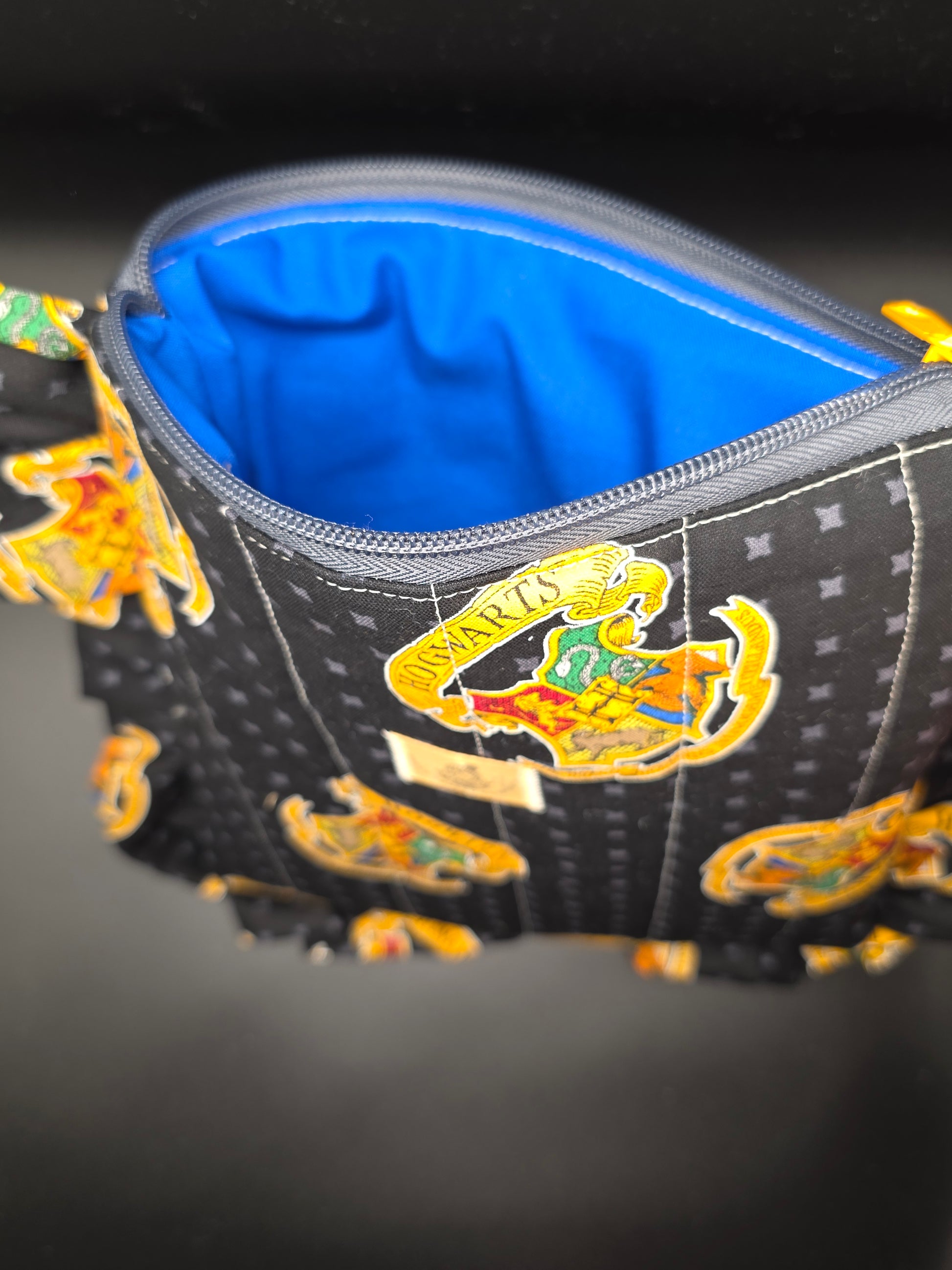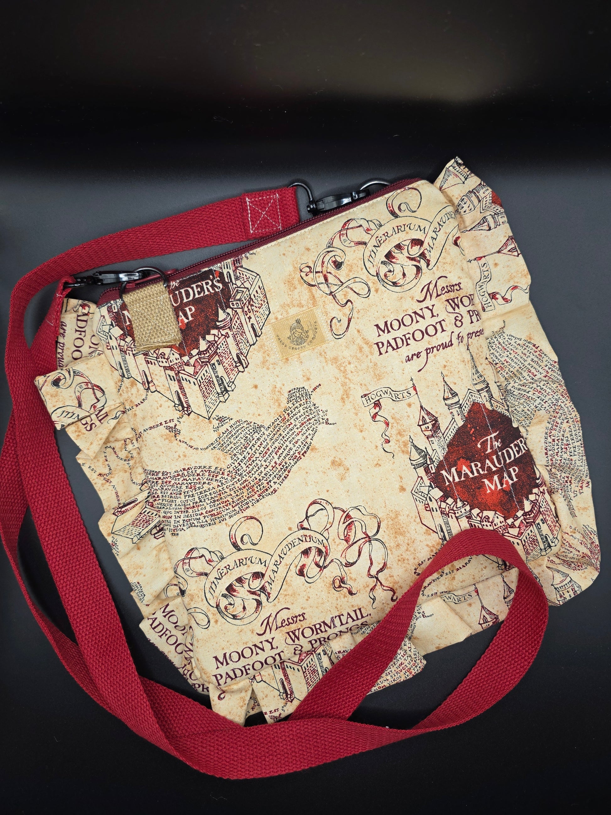 Each bag is crafted with high-quality fabric featuring iconic wizarding-themed designs, making it the perfect accessory for any witch, wizard, or muggle who loves a touch of fandom in their everyday style.