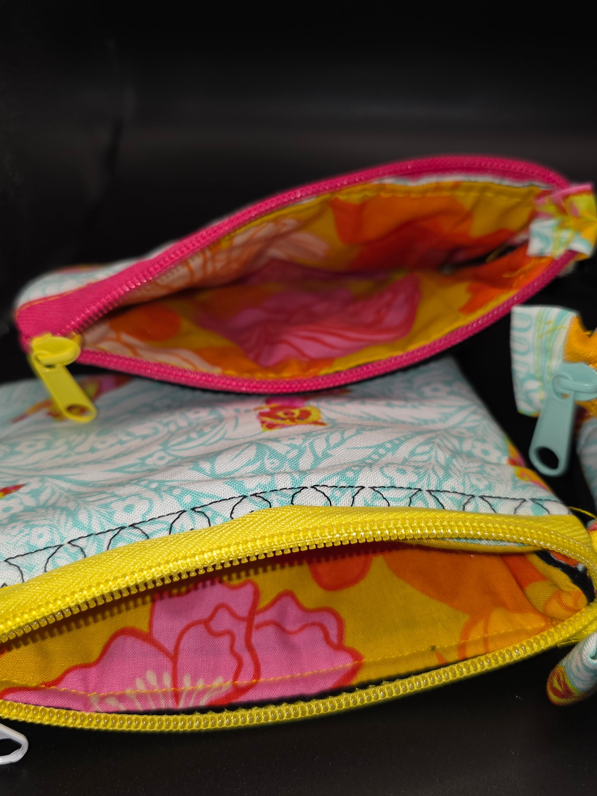 - The quilted cosmetic bag is HANDHELD size and will be roughly 5.5 inches long, 7 inches wide & 1 inch tall